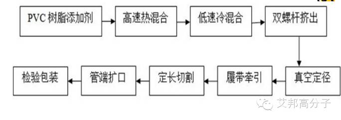 另外,在生产中可与上述所示流程不同,即采取粉料直接挤出管材而不进行造粒,但应注意两点: